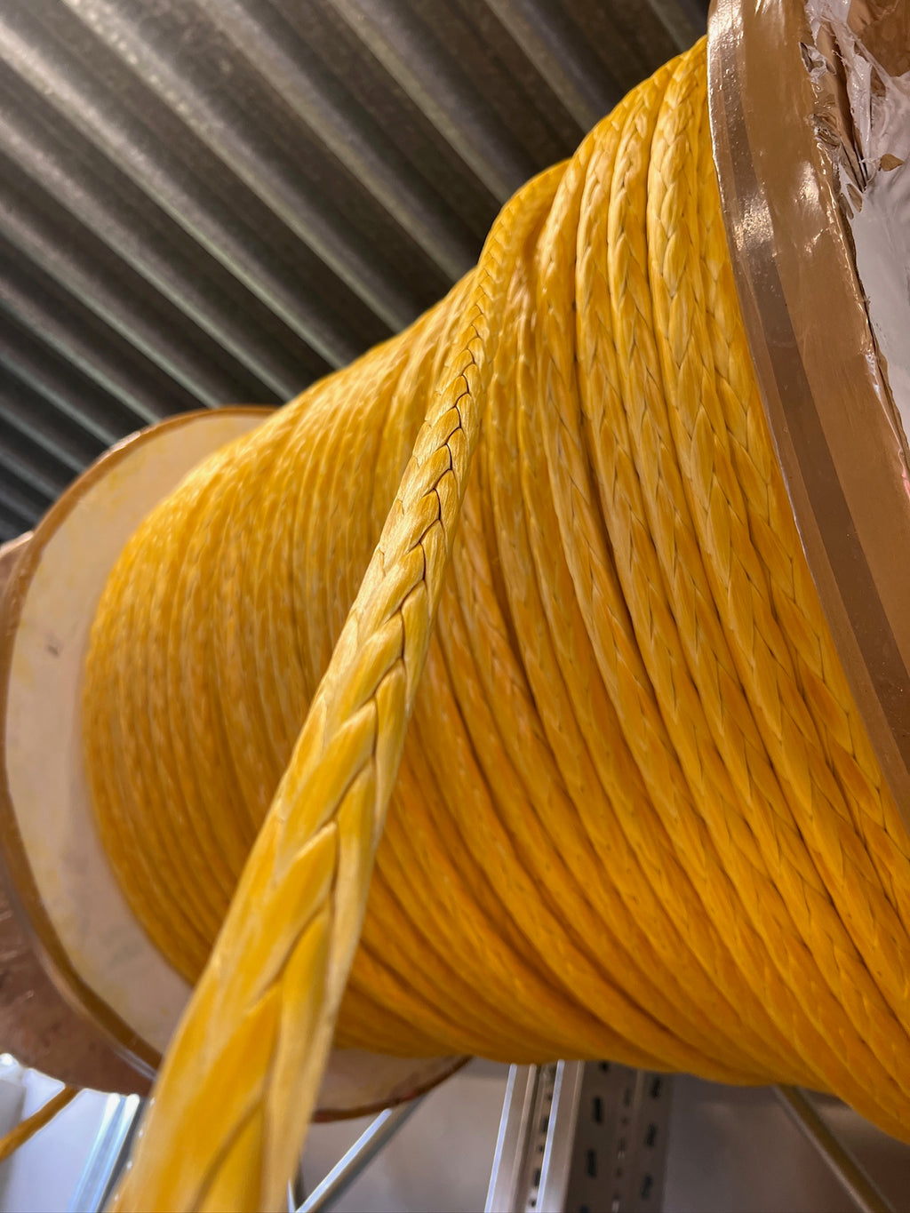 12 strengs gevlochten touw, vervaardigd van UHMWPE garens.