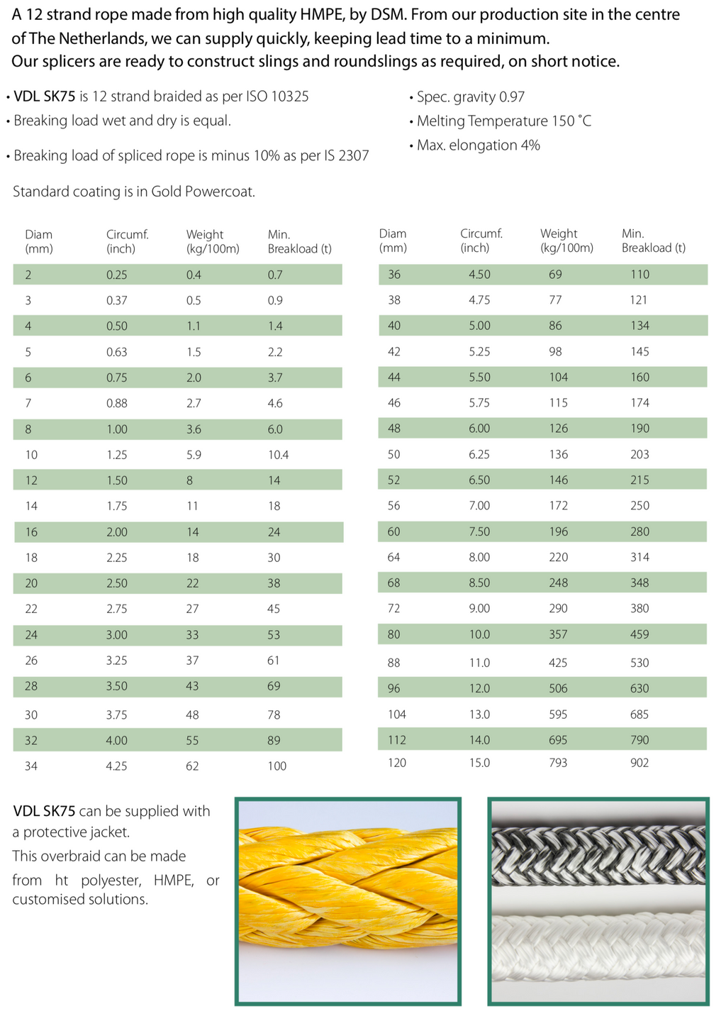 De beschreven MBL is voor nieuw ongesplitst touw, de MBL voor gesplitst touw is min 10% (ISO 10325)