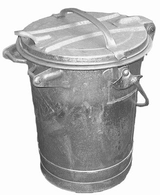 Verzinkte emmer met scharnierend deksel, voor het bewaren van: 1. Oliehoudende poetslappen.