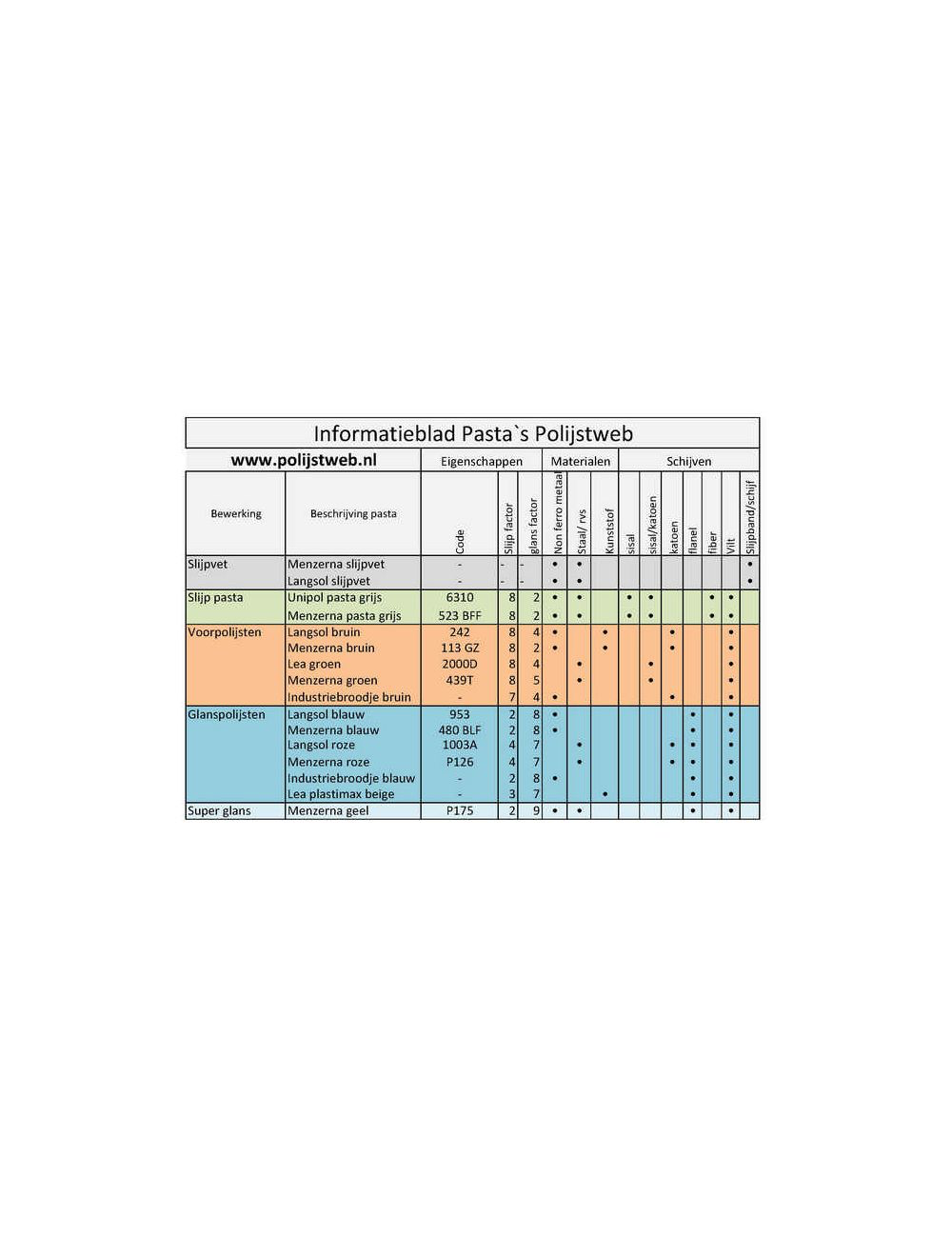 Menzerna Roze. Deze Menzerna polijstpasta kan gebruikt worden voor glans polijsten van RVS en aluminium. Droge pasta. Kan gebruikt worden in combinatie met een katoen schijf.