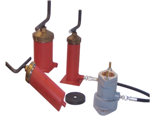 Solide vetpersen bestaande uit een bronzen kap, stalen huis, oplopend spindel met een rubber zuiger. Leverbaar met een aansluiting onder of met een voetplaat. In het laatste geval zit de aansluiting aan de zijkant.