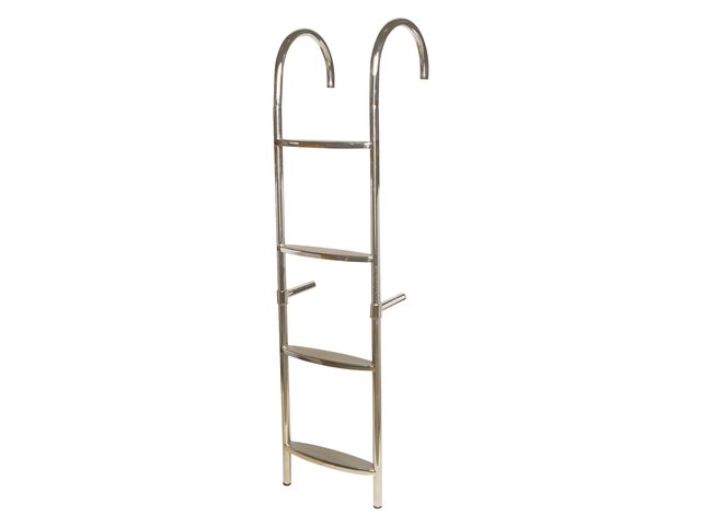 Materiaal: RVS304 Totale hoogte 4-treden incl beugel: 125,5 cm Totale hoogte 5-treden incl. beugel: 156,5 cm Diepte: 29 cm Afstand tussen treden: 29,5 cm Totale breedte. 34,5 cm