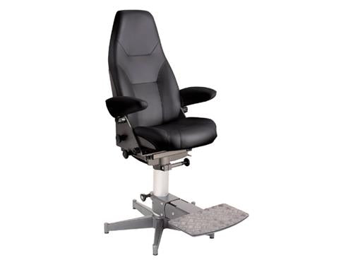 Professionele stoel speciaal voor de zeevaart met een extra zwaar onderstel met veel instelmogelijkheden, standaard uitgerust van stoelslede en grote opklapbare voetensteun.