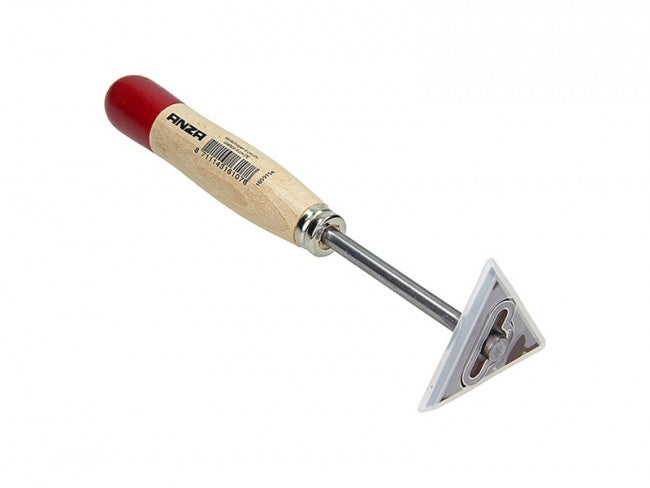 Anza Verfkrabber Driehoek Professioneel Extra Hard is vervaardigd uit blauw gehard staal. Het heeft een scherp, duurzaam en voorzien van een lange houten staal om gemakkelijk voldoende kracht te kunnen zetten.